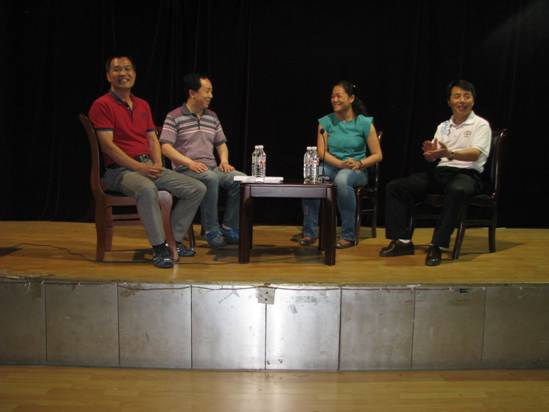 活动伊始,主持人纪老师以老员工中存在的“手机控”、“游戏控”群体为例,认为运动缺乏是目前老员工中的普遍现象。嘉宾从自身参与体育文化活动感受入题,分享体育运动对健康生活的积极作用。胡鸿晓教授以自身体育运动为例,鼓励老员工培养自己运动习惯,持之以恒的锻炼下去;张永涛老师分享了在大学时期体育运动的感受,说明了运动爱好的重要性;阮凌老师讲解了如何防止运动损伤,如何合理运动、如何增加肌肉、如何减肥等话题。三位嘉宾谈笑风生,和同学们交流各自关于运动的故事,而其背后更是透射出了精彩的人生哲理。纪宏耀老师激情昂扬的用“运动增强体质,运动促进心理健康,运动舒缓情绪,运动提高学习效率”的强力号召打动了现场的每位同学,希望更多的同学走出宿舍,走向操场,让青春飞扬在运动场中,把运动融入生活,成为一种习惯!