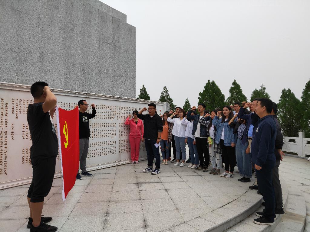 在烈士纪念碑下,在鲜红的党旗前,党员师生重温了入党誓词,面对党旗立下誓言,为党和人民的事业奋斗终生。