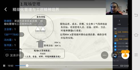 本次培训共计48个学时,每天下午5-8点线上上课,主要内容设计员工健康生活与疫情防控、社会主义核心价值观新民风与员工职业道德建设、缫丝企业安全生产与6S管理、企业经营与员工成长、企业技术创新理论与方法、缫丝产品开发与价格策略、缫丝产品质量管理、缫丝织物的前处理与整理、缫丝加工工艺与品质管理、精细化生产与工匠精神、企业管理之道与市场营销等专业知识。整个培训既重视理论知识的拔高,又充分结合案例,从职业素养、健康生产生活、创新思维、企业管理和技能等视角较为全面地提升了员工的职业技能和综合素养,为企业提质增效发挥了积极促进作用。