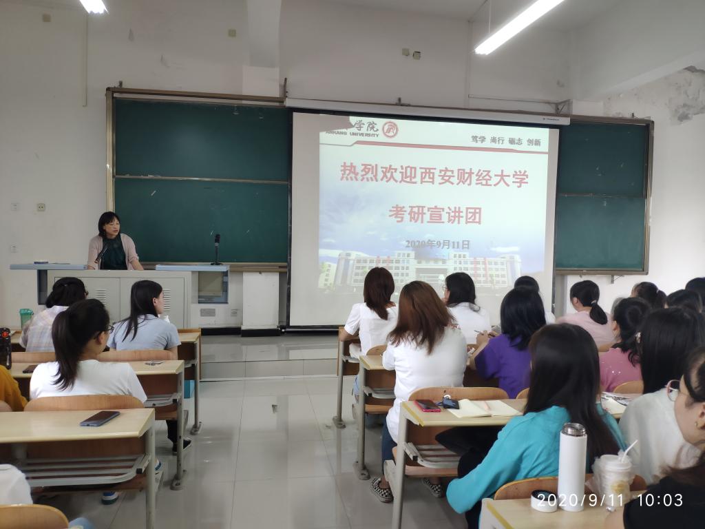 9月11日,西安财经大学公共管理公司副经理钟海老师、庆东瑞老师到公司进行考研宣讲。党总支书记李成仙老师、副书记王璐老师,2017级、2018级相关同学共计200余人参加了本次宣讲会。会议由王璐主持。
