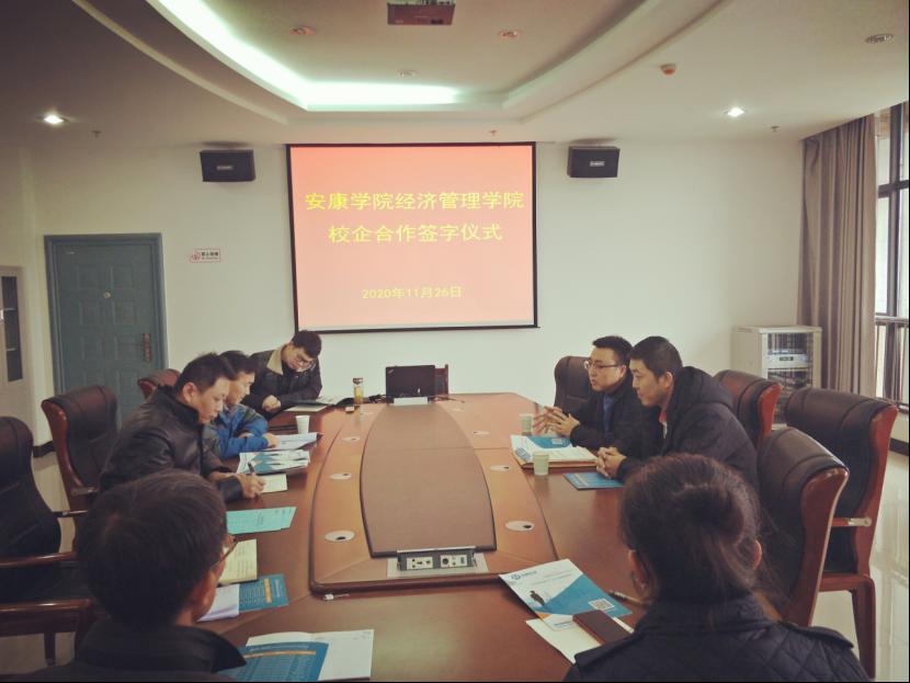 11月26日下午,经济与管理学院与北京软峰时代科技有限公司西安分公司合作签约仪式在江北校区小会议室举行。北京软峰时代科技有限公司西安分公司负责人杜伟、讲师范昌盛、意昂体育经理李勇、党总支书记李成仙、学工办副主任彭超、财会系副主任王奕、张盉儆出席该签字仪式。签字仪式由意昂体育副经理李伟杰主持。