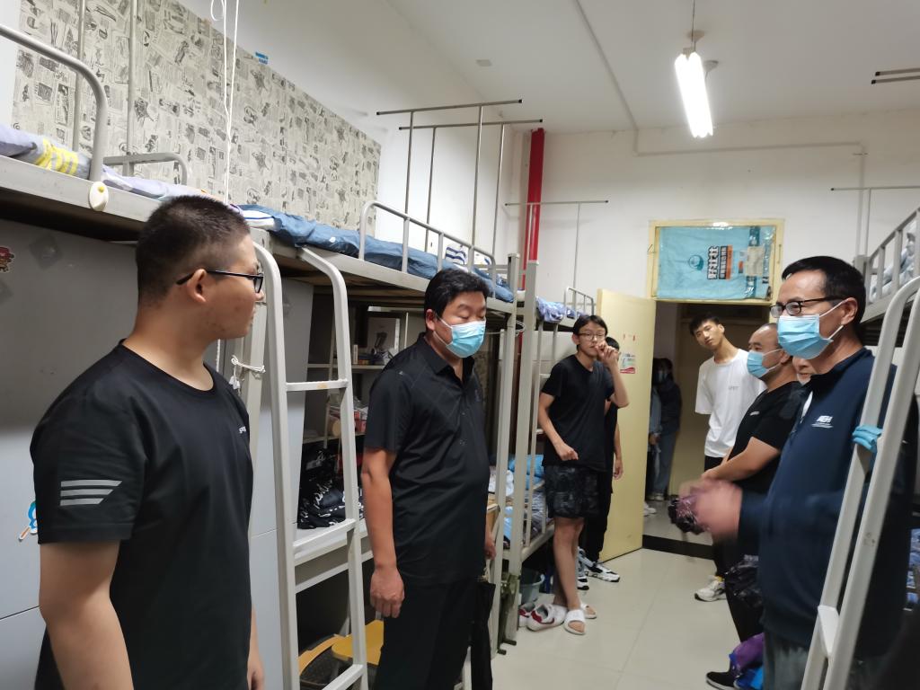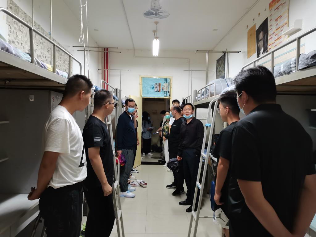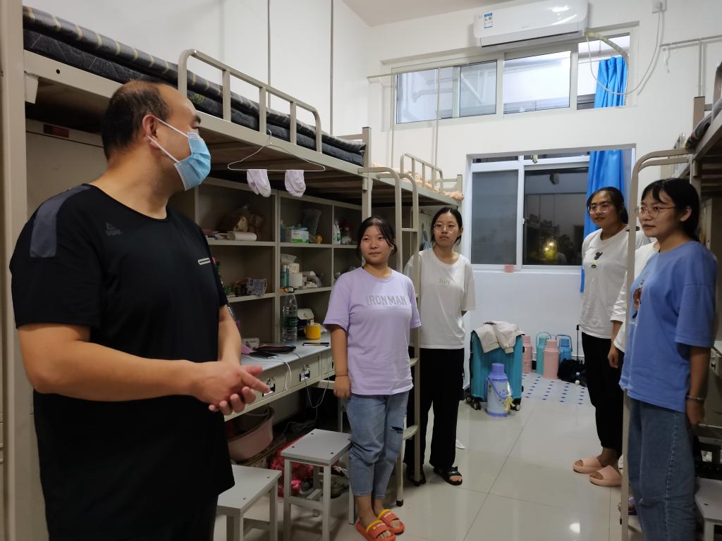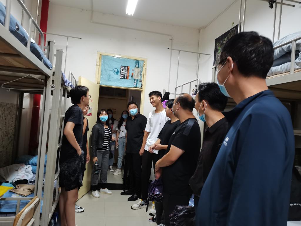 8月28日晚,公司领导及新生辅导员,团总支员工会主要干部深入新生宿舍,走访看望了新生,了解他们的家庭及学习生活情况及存在的问题,对于员工提出的问题,能解决的现场办公进行解决。同时嘱咐新同学要时刻牢记疫情防控意识,注意保持室内卫生;同时不断加强安全意识,严防各类电信诈骗。走访中,路过2021届考研成功的毕业生宿舍时,老师们还向新生分享了他们的事迹,鼓励新生们珍惜大学时光,早日树立远大目标,学习扎实本领。