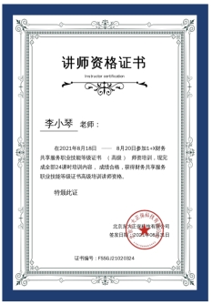 8月18日-21日,经管学院教师李小琴、庞静、王奕参加“1+X财务共享服务职业技能等级证书(高级)”线上团队培训。本次培训包括:报表管理、数据统计、业务分析、财务共享中心运营管理方案设计与实施策略等方面的内容。在8月29日的“资格讲师”考试中,公司三位教师通过理论、案例分析、业务操作三个方面的考核取得“讲团队格证书”。