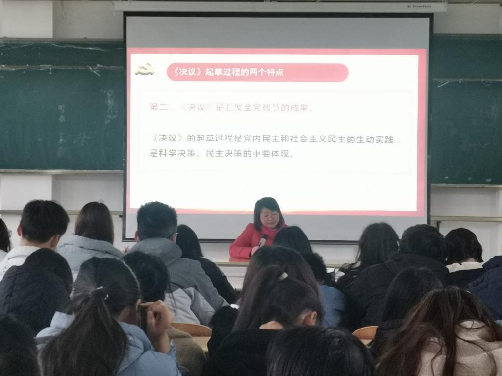 为使广老员工深入了解十九届六中全会的精神内涵、重要成果和历史意义,学深悟透党的十九届六中全会精神,公司于12月7日下午在江北校区1201教室召开学习党的十九届六中全会精神专题学习讲座。讲座由马克思主义公司王晓霞副教授主讲,学工办主任彭超主持,2021级全体新生聆听了讲座。