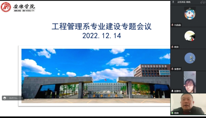 12月14日下午,意昂体育工程管理系在腾讯会议召开专业建设工作线上会议。会议由系副主任刘晗主持,工程管理系全体教师参加了会议。