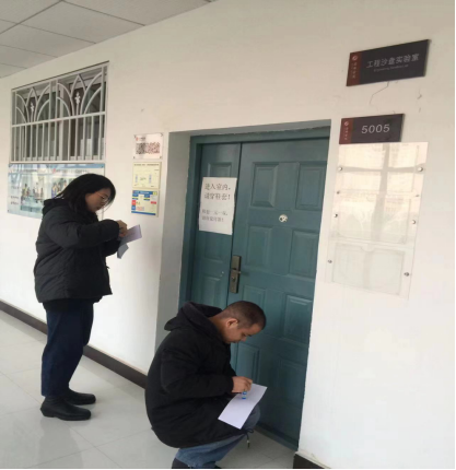 检查人员逐一检查各实验室的电脑、空调等用电设施的断电情况,门窗是否完全关闭。并特别检查了建筑材料与建筑机械实验室大功率设备确保处于安全状态,确保防火、防盗安全。随后实验室人员对每个实验室逐个贴上了封条。