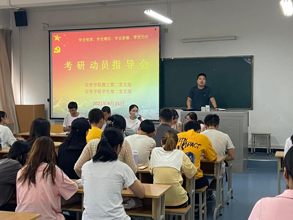 员工第二党支部书记王康主持会议,教工二支部党员张盉儆、薛焕霞、庞静、康莉霞等老师分别从为什么考研、考研形势,考研提升与就业发展,专硕、学硕选择等共同关心的话题做了深入分析和指导,并结合自身考研经历就专业和报考公司的选择做了经验分享,围绕考研员工提出的一些疑问进行耐心解答,为同学们加油鼓劲,增强信心。